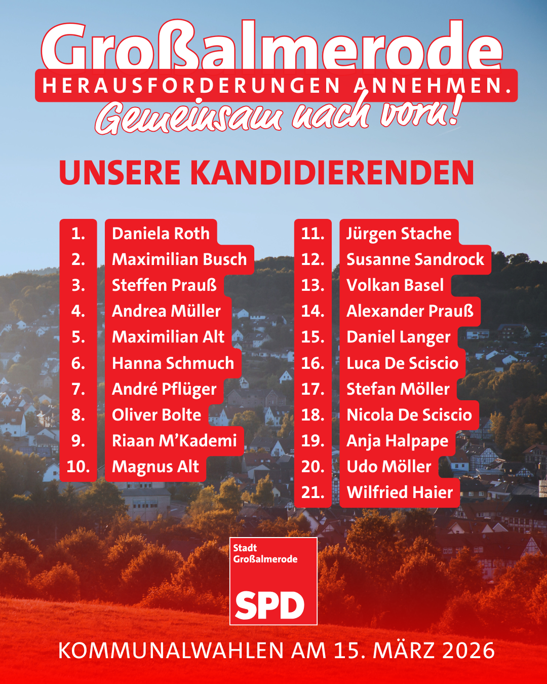 Lernen Sie unsere Kandidierenden kennen und kommen Sie mit uns ins Gespräch.